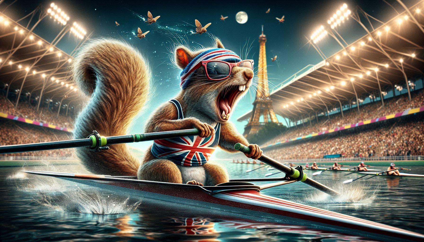 Squirrel Rowing in Paris Art Print – A moving matte print featuring an emotional squirrel rowing with all its strength in a sleek racing shell. Its eyes shine with determination and vulnerability as it pulls the oars through the water, tiny paws gripping with surprising power. The Eiffel Tower rises in the background, casting a sense of grandeur and poignancy over the scene. Painted in a painterly, whimsical, hyper-realistic style, this artwork blends the expressive charm of the squirrel with the drama of rowing in Paris. Perfect for squirrel lovers, collectors of emotional animal art, and fans of imaginative sports scenes.