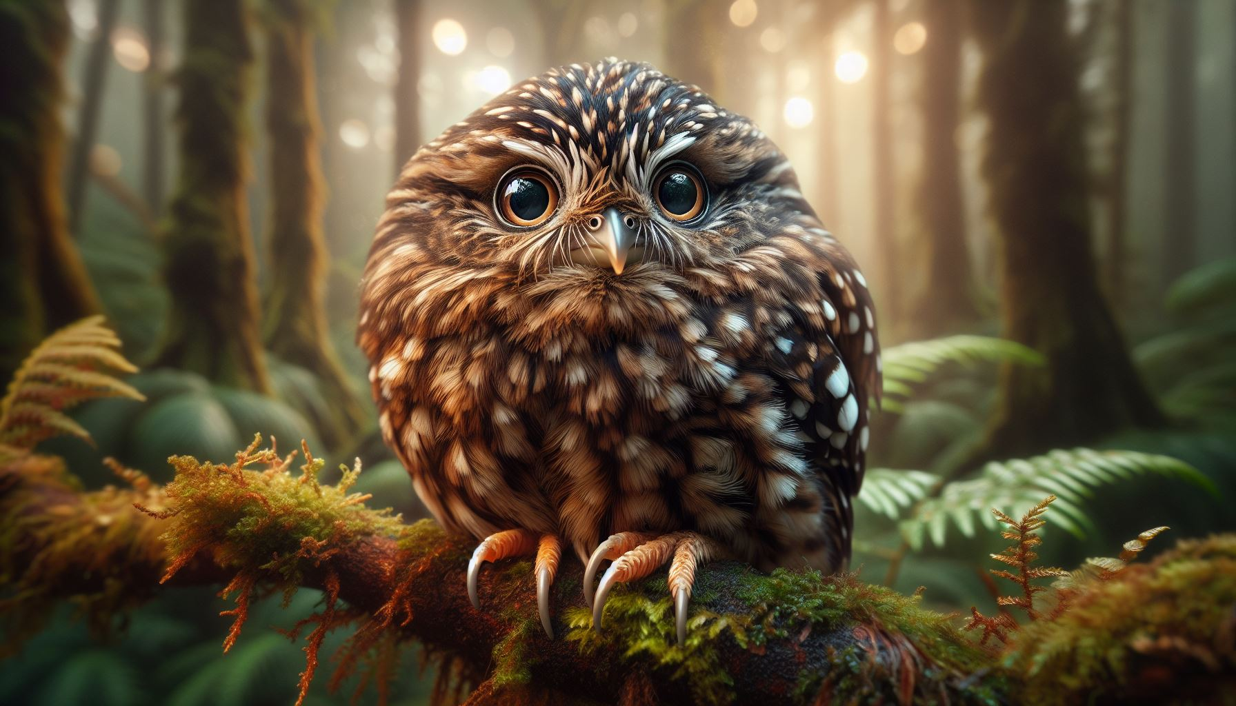 Stunning New Zealand Bird art print featuring the Morepork (Ruru) perched on a moss-covered branch deep in the forest. The Bird’s large, watchful eyes gleam softly in the twilight as ferns and damp foliage frame the scene. Subtle light filtering through the canopy highlights the mossy textures, creating a high-quality artwork that captures the quiet mystery of Aotearoa’s native owl. Perfect for Bird lovers, art collectors, or anyone inspired by the haunting beauty of New Zealand’s forests at dusk.