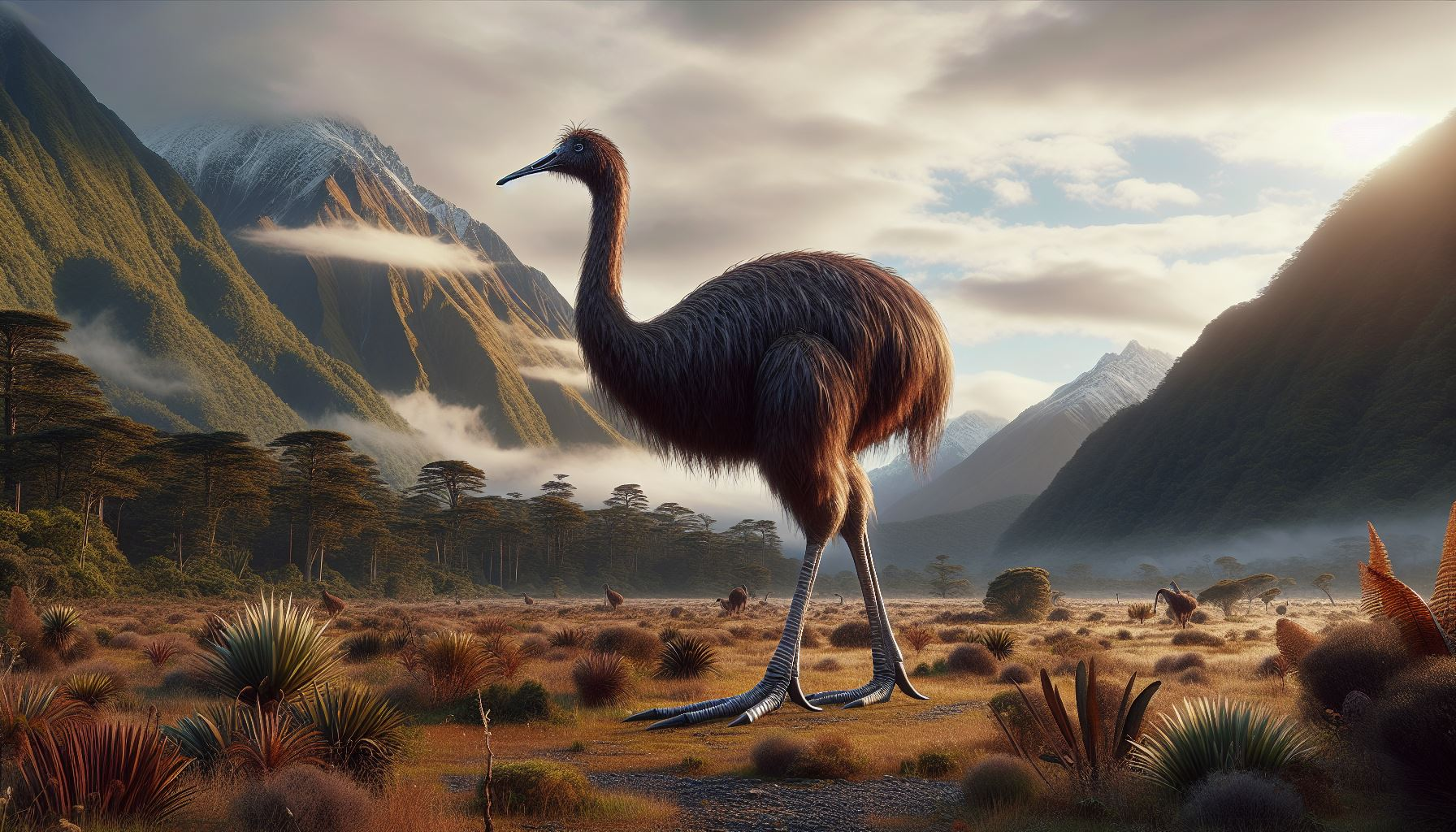 Stunning New Zealand Bird art print featuring the extinct Moa walking through an ancient landscape. Towering above ferns and native shrubs, the Moa’s powerful form moves across a primeval scene of misty valleys, rugged hills, and early forest growth. This high-quality artwork evokes the wonder and mystery of Aotearoa’s prehistoric past, bringing to life one of the most iconic Birds ever to walk New Zealand’s landscapes. Perfect for Bird lovers, history enthusiasts, art collectors, or anyone inspired by the lost wildlife of New Zealand.
