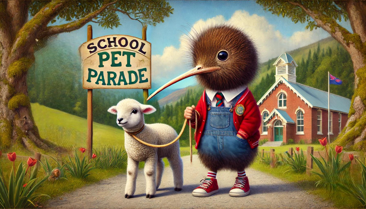 This whimsical matte art print captures the classic Kiwi tradition of Pet Day, where a proud farm kid shows off his lamb — freshly brushed, ribboned, and (mostly) on its best behavior. Painted in a rustic, painterly style with bright countryside detail, the artwork celebrates the humor and heart of rural childhood, where kiwi kids march their animals into school and hope they behave for the judges. A playful storybook-style piece, perfect for farmhouse décor, sheep lovers, or anyone who enjoys funny, country-inspired art.