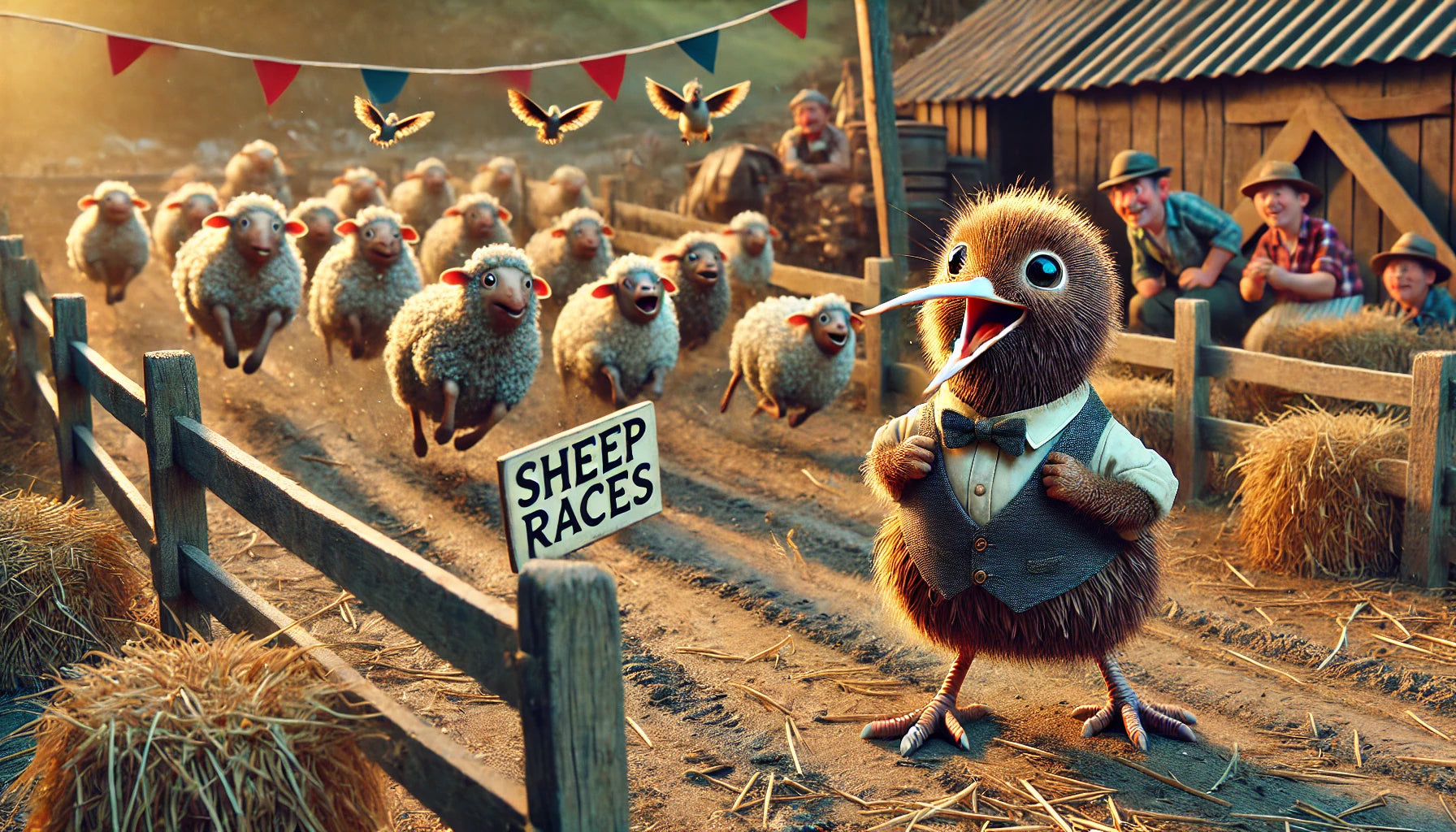 This whimsical matte art print captures the annual highlight of rural Canterbury — the much-anticipated sheep race. Painted in a rustic, painterly style with a lively crowd, woolly racers thundering down the track, and a few sheep more interested in grass than glory, the artwork blends humor and tradition with the charm of New Zealand farm life. A playful, storybook-style piece, perfect for farmhouse décor, sheep lovers, or anyone who enjoys funny, whimsical country art.