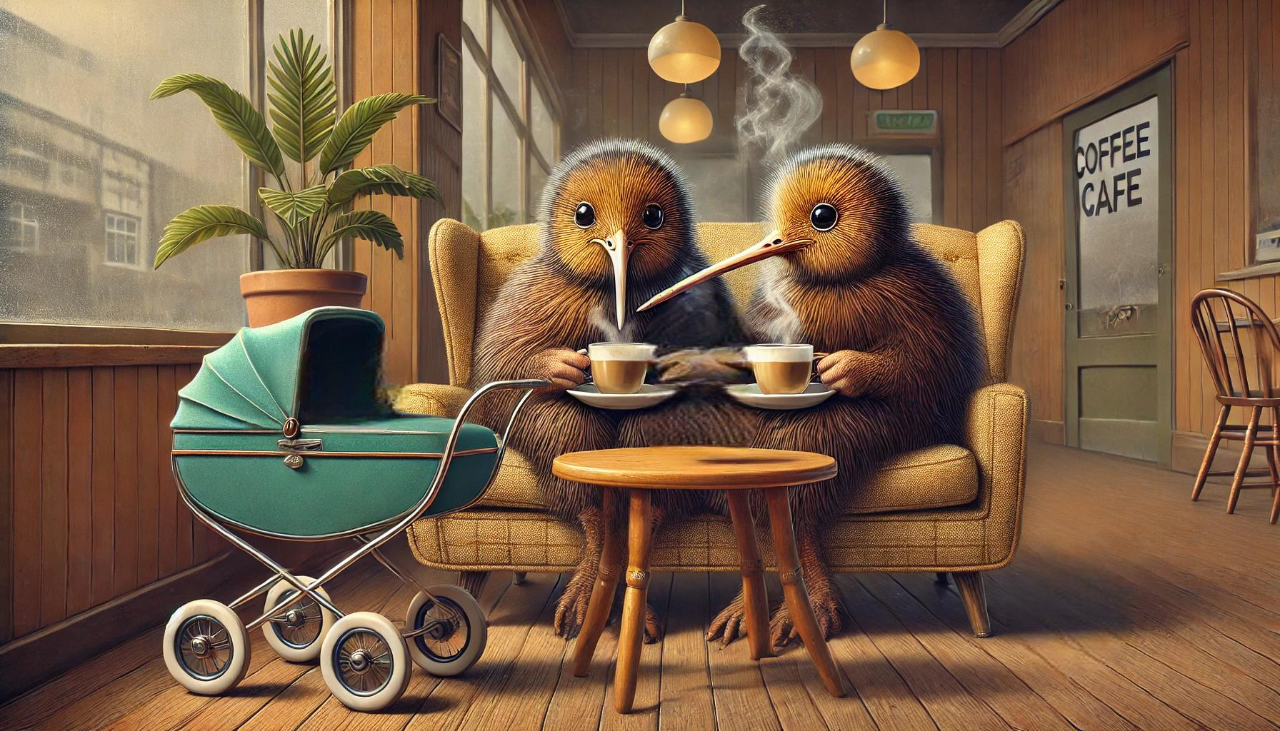 This whimsical 16x20 inch matte art print captures the farmer’s wife and an addition to the family on a rare trip into town, enjoying a long-overdue coffee with her friend at a rustic café. Painted in a warm, painterly style with cozy interior detail, steaming mugs, and cheerful chatter, the artwork blends humor and charm with the everyday rhythms of New Zealand country life. A lighthearted storybook-style piece, perfect for farmhouse décor, coffee lovers, or anyone who enjoys whimsical, country-inspired art.