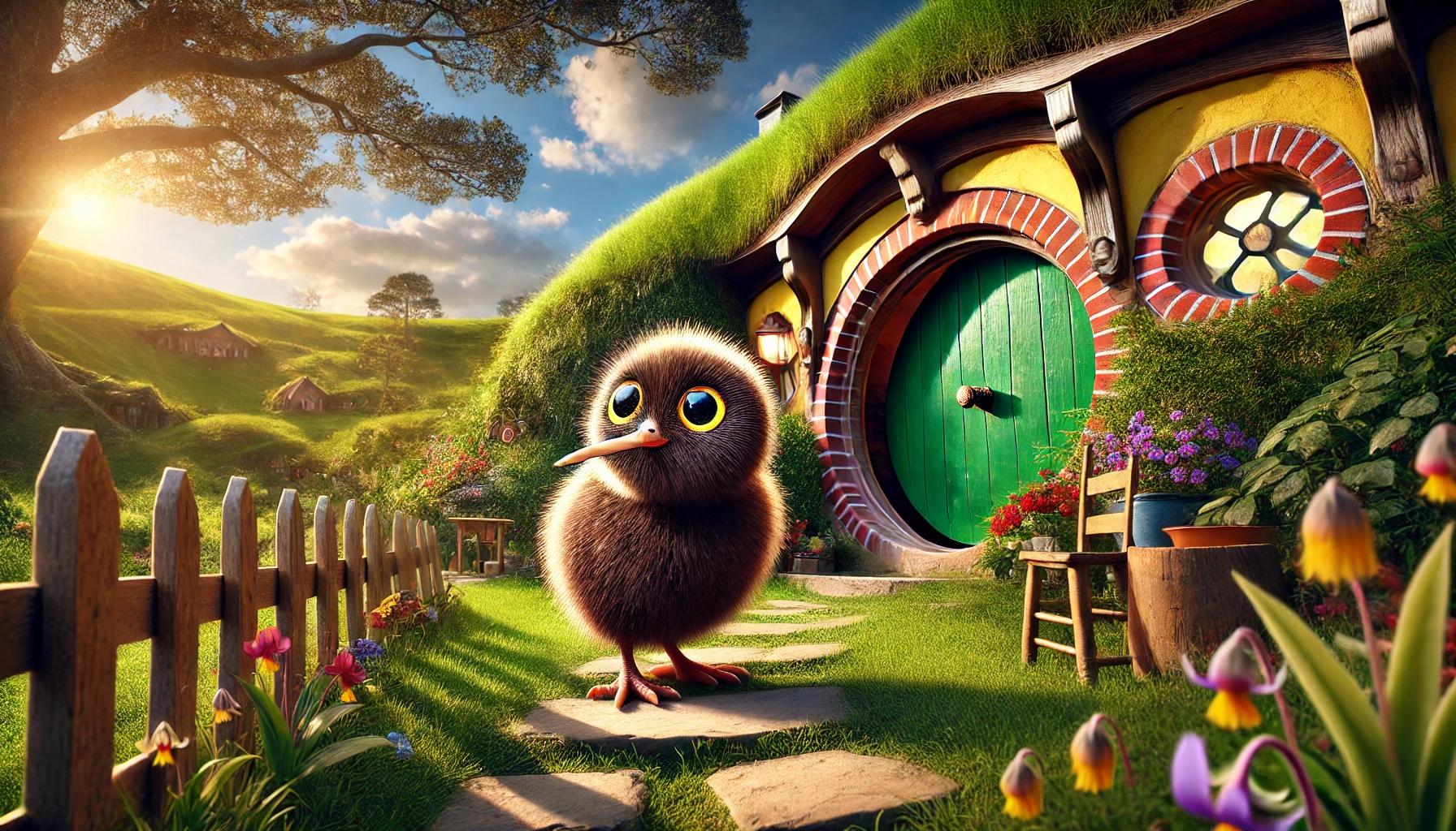 This whimsical matte art print features Kiwi wandering through Hobbiton at sunset, wide-eyed with delight as he soaks in the round doors, lanterns, and rolling hills straight out of Middle-earth. With feathers ruffled by the evening breeze and an awestruck look that says he might just move in, Kiwi brings humor and charm to New Zealand’s most magical movie set. Painted in a rustic, painterly style with golden countryside light, the artwork blends personality, adventure, and storybook whimsy. Perfect for farmhouse décor, Hobbiton fans, or anyone who enjoys funny, whimsical Kiwi art.